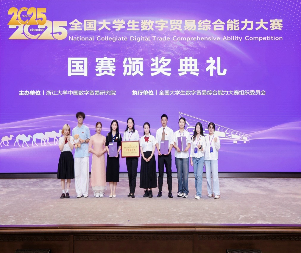 第四屆全國大學生數字貿易綜合能力大賽全國總決賽于2025年9月28日在浙江大學紫金港校區舉行,我院留學生TRAN THI LY NA(陳氏璃娜)、PHAM THI MINH CHAU(范氏明珠)所在團隊獲得絲路電商來華留學生賽道全國總冠軍(一等獎第一名)。
