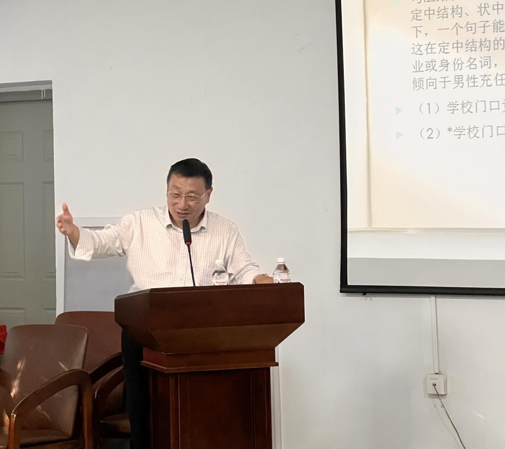 本站訊(通訊員:李長(zhǎng)威 攝影:李長(zhǎng)威)10月18日下午,學(xué)院邀請(qǐng)上海師范大學(xué)人文學(xué)院教授、博士研究生導(dǎo)師、上海師范大學(xué)漢語(yǔ)言文字學(xué)博士點(diǎn)學(xué)科負(fù)責(zé)人宗守云在1號(hào)樓119會(huì)議室做《社會(huì)固有模式及其對(duì)語(yǔ)言的影響》講座。講座由謝榮娥教授主持,學(xué)院博士生、碩士生及部分本科生參加。