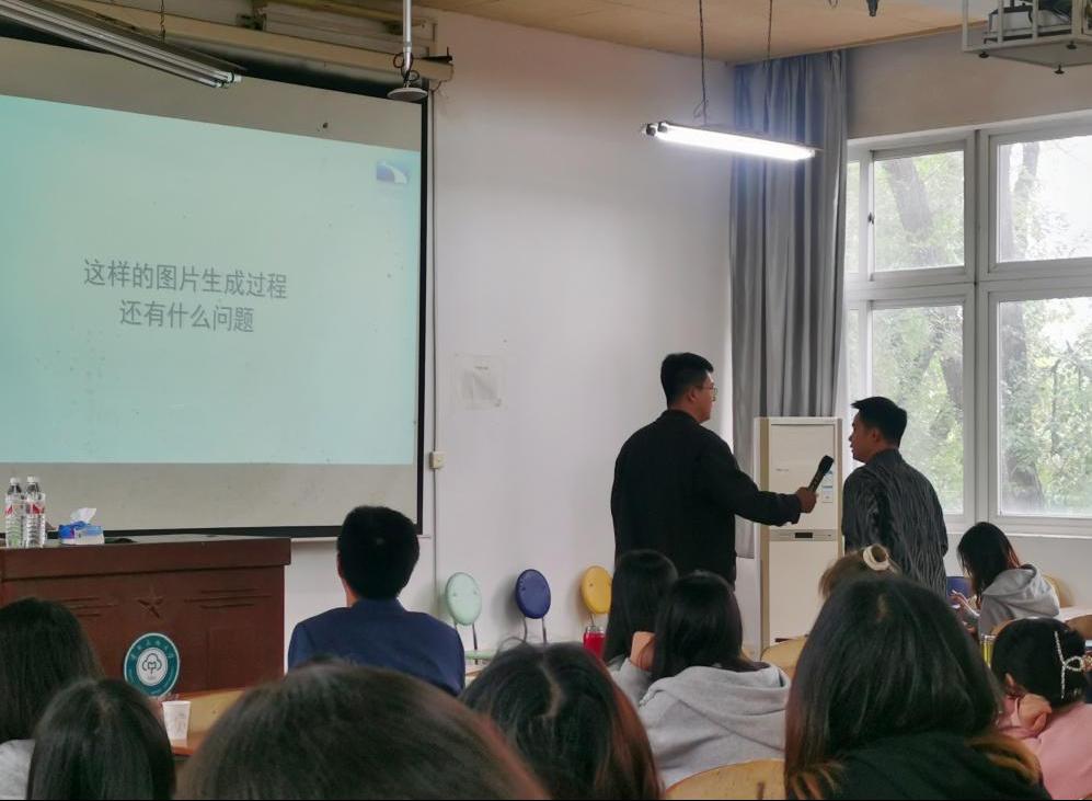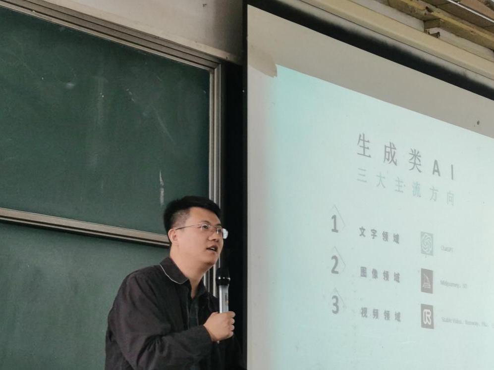羅曉賢主任首先從新媒體時代傳統媒體所面臨的挑戰出發,指出盡管媒體傳播視角與文稿的調性正在經歷變革,然而新聞工作者所需具備的基礎能力卻從未改變。他進一步強調,即便是在AI輔助創作背景下,審美能力和創作能力仍是新聞工作者不可或缺的重要素養。羅主任結合自身的從業經驗探討了短視頻創作中的結構布局、技巧運用及其創新之道,強調了借勢和熱點追蹤的重要性,為同學們理解和掌握短視頻創作提供了多維視角。隨后,他以多個生成式AI軟件為例,從文字、圖片、視頻三個方面展示了生成式AI在工作、學習中的實際運用,他指出:“技術在提升傳播效果方面能力強大,但面對技術浪潮下的內容競爭,既要保持與技術的對話,也不能將導向全部交由技術。”