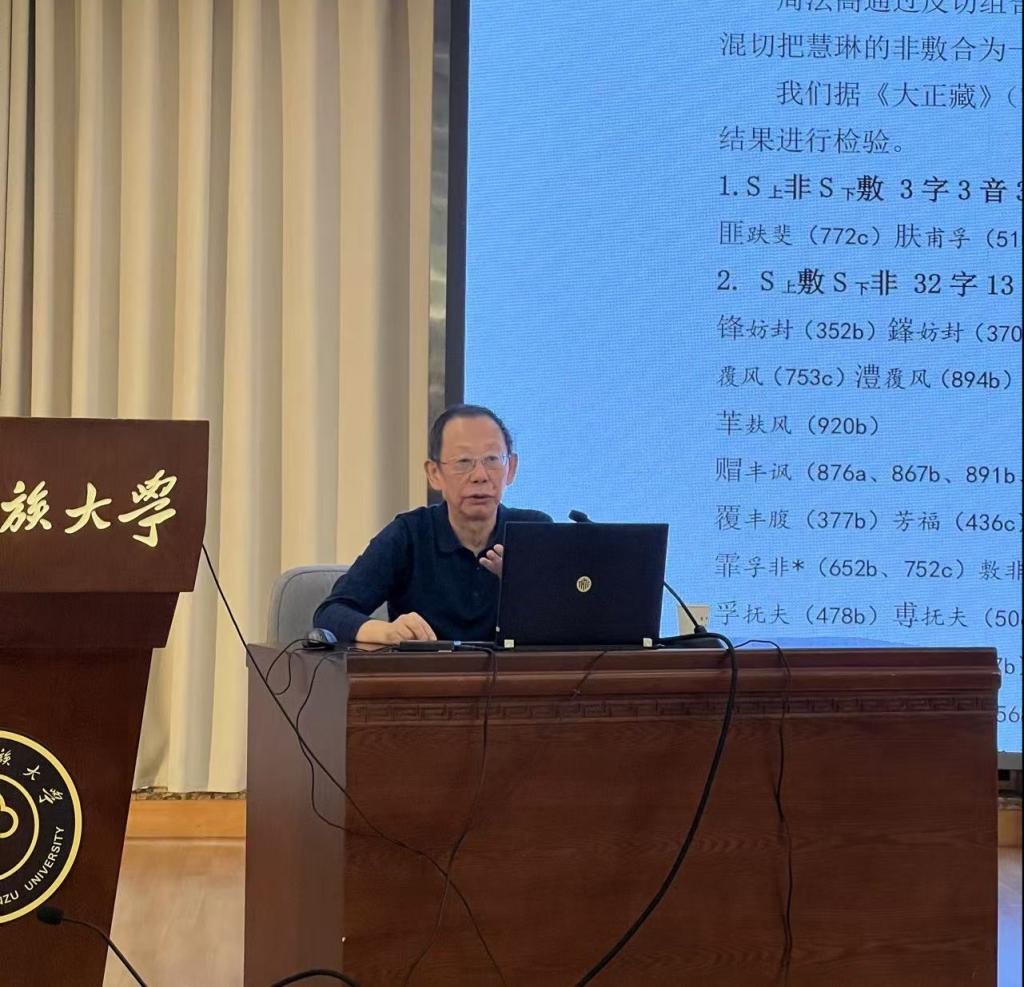 楊軍教授首先介紹了反切的起源,并引用了著名學者陳澧在《切韻考》中的概括,闡明了反切的基本原則:上字決定聲母,下字決定韻母及聲調。反切作為古代漢語注音的主要方法,從漢代逐漸普及到魏晉南北朝時期,隨著時間推移,逐漸發展出多種類型,以適應音韻的變化和注音需求。楊教授指出,隨著中古漢語的聲母、介音等成分的分化,反切也進行了相應的調整。這些變化不僅讓反切在注音上更加簡潔高效,還反映了古人對音節構造、聲調及語音特征的逐步深入認識。