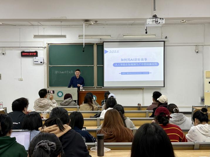本站訊(通訊員:張夢涵 攝影:張夢涵)10月18日上午,學院邀請湖北廣播電視臺紀錄片部主任、高級記者、文學博士張昌旭在15號樓120教室開展《如何用AI講好故事:AI賦能短視頻創作的創新與堅守》學術講座。講座由王江蓬副教授主持,學院部分教師、本科生及研究生參加。