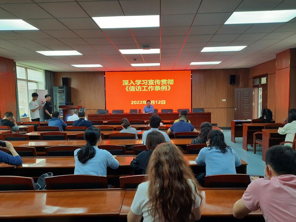 5月12日下午,數學與統計學學院召開全院大會,深入學習貫徹《信訪工作條例》,本次學習由黨委書記李海濤主持。