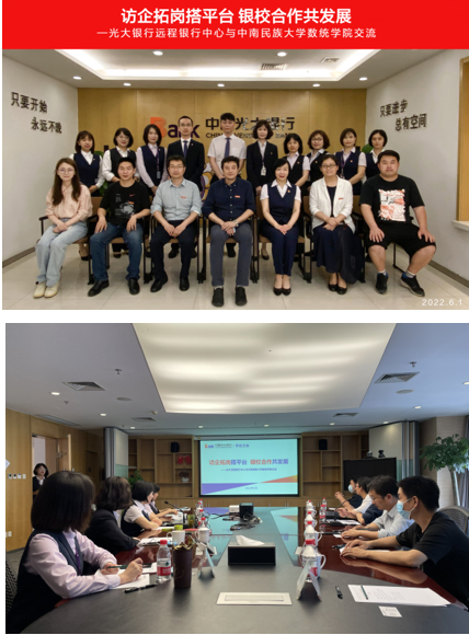 為深入貫徹落實(shí)教育部“全國(guó)高校書(shū)記校長(zhǎng)訪企拓崗促就業(yè)專(zhuān)項(xiàng)行動(dòng)”,深化產(chǎn)教融合校企合作,6月1日,院黨委書(shū)記李海濤帶隊(duì),副院長(zhǎng)夏永波、黨委副書(shū)記郭琳、應(yīng)用數(shù)學(xué)教研室主任彭超權(quán)、統(tǒng)計(jì)學(xué)教研室主任王維峰以及畢業(yè)班輔導(dǎo)員張?bào)淝叩纫恍?/span>6人赴光大銀行遠(yuǎn)程銀行中心武漢分中心進(jìn)行考察交流,武漢分中心負(fù)責(zé)人李艷芳處長(zhǎng)、經(jīng)理易珉等參與接待與交流。