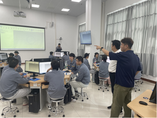 學院領導就實訓安排、區域分布、設備使用和教學管理等問題與實訓基地的老師進行了深入交流,在實訓區域現場觀摩了教師的授課與學生的實際操作。