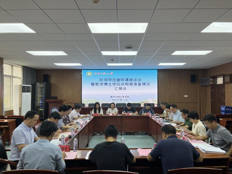 李金林認真聽取諶永榮老師講授的《概率論與數(shù)理統(tǒng)計》課程,詳細記錄了授課內容、教學方法和教學效果,并在課后與師生進行了深入交流。調研座談會上,院長胡軍浩圍繞數(shù)學博士點申報準備情況進行了詳細匯報,學院其他負責人分別匯報了本科專業(yè)教學、公共數(shù)學教學、科研工作和學生工作等方面的情況。教務處、研究生院、國有資產(chǎn)與實驗室管理處和黨委保衛(wèi)部負責同志與學院領導班子進行了交流。