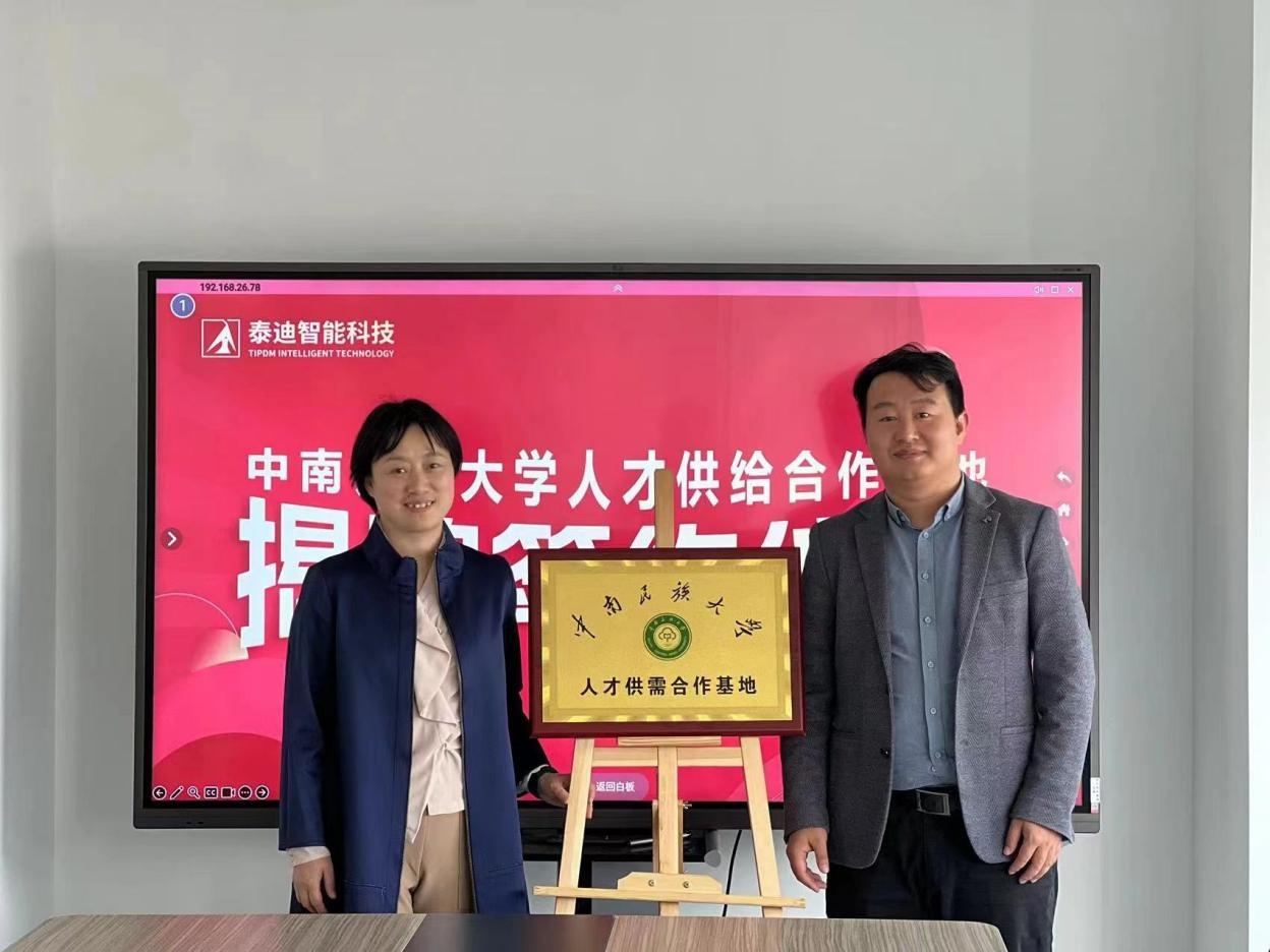 (黨委副書記宋榮與廣州泰迪公司副總經(jīng)理施興為人才供需合作基地揭牌)