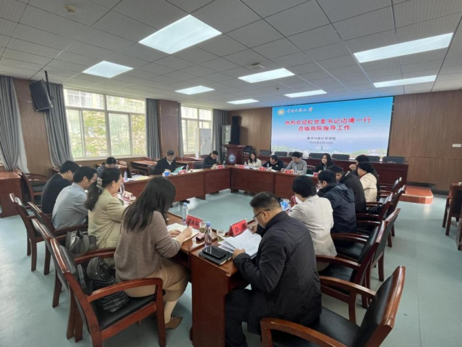 4月10日上午,校黨委書記邊境深入數學與統計學學院課堂一線,調研指導學院學科專業建設、師資隊伍建設及大學數學教學工作,并與學院領導班子、支部書記、教研室主任座談。黨委組織部常務副部長周剛,教務處副處長劉晶陪同調研。