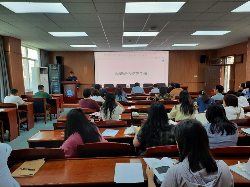 夏永波向全院教師介紹國家自然科學基金委員會2023年12月發布的《科研誠信規范手冊》相關條款。《手冊》涵蓋三個層面的內容:一是通過闡述科學研究、科研管理等活動中應該遵守的相關行為準則,重點說明有關科研誠信“應該做”的方面,作為所有科研人員、評審專家、科研機構和資助機構在科研誠信方面應當達到的行為標準;二是說明有關科研誠信“不能做”的方面,即“有問題”的行為,作為對“應該做”方面的補充說明,同時也是一種警示;三是對科研不端行為做出說明,這是科研活動不能突破的底線。