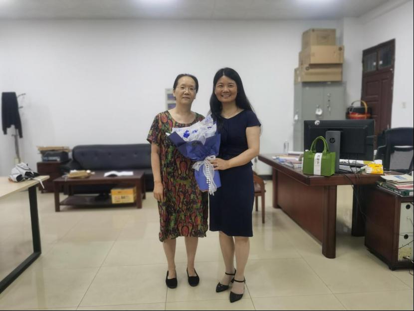 上午10時,李紅燕率隊來到段汕教授的工作室,握著段老師的手親切地說:“您已經(jīng)在學(xué)院工作超過40年了呀!我當(dāng)年上的2門課在您這里學(xué)習(xí)過,您是我的好老師呀!”