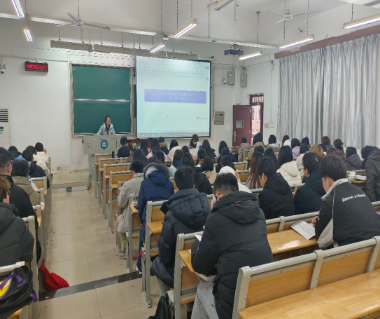 覃瑞一行深入學院曹靜老師的《時間序列分析》課堂,認真聽課,觀察學生們的學習狀態,詳細記錄課堂情況,并在課間與師生進行親切交流。