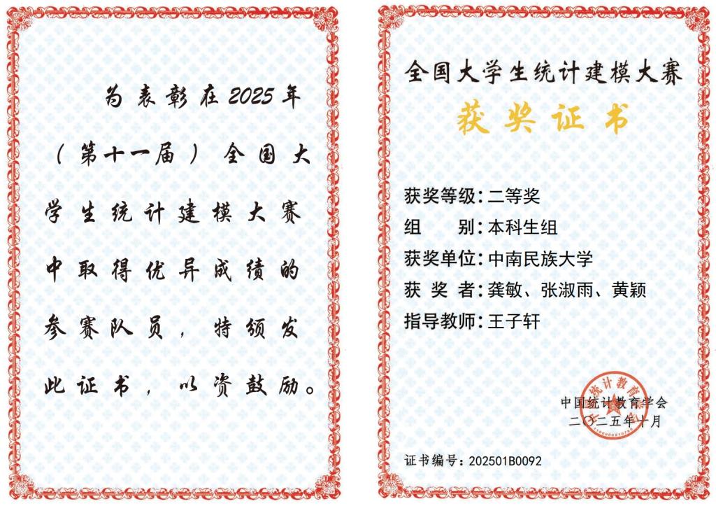 學院始終高度重視學生創新實踐能力與統計應用能力的協同培養,積極組建經驗豐富的指導教師團隊,通過精準輔導、模擬演練等多種形式,全面提升學生的競賽素養與綜合能力。此次優異成績的取得,充分展現了我院在人才培養方面的扎實基礎與顯著成效,也凝結了指導教師團隊的辛勤付出與專業智慧。
