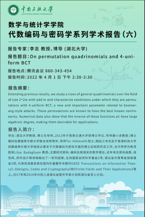 【學術講座】4月1日湖北大學李念教授學術講座通知