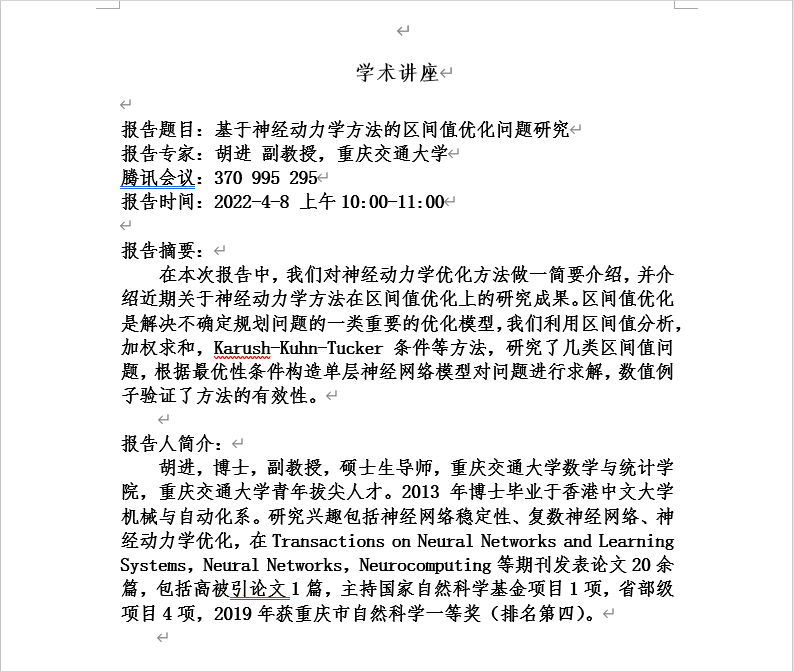 【學術講座】4月8日重慶交通大學胡進副教授學術講座通知