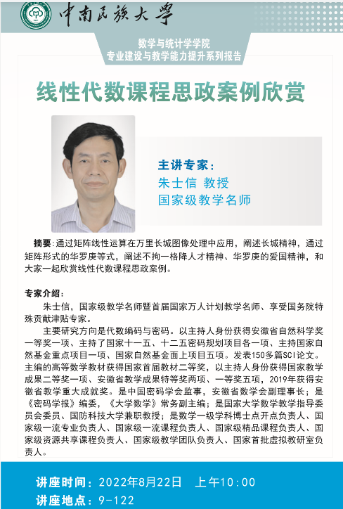 【學(xué)術(shù)講座】8月22日合肥工業(yè)大學(xué)朱士信教授學(xué)術(shù)講座通知
