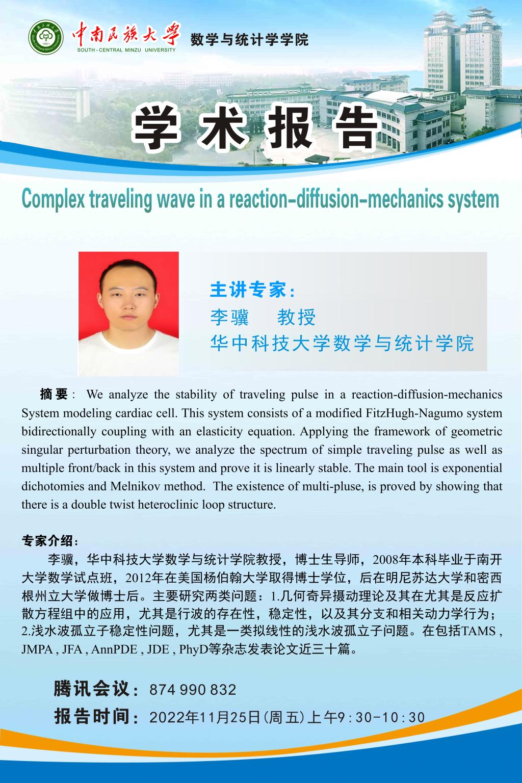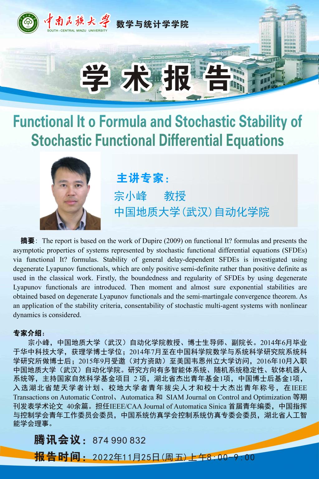 【學術講座】11月25日中國地質大學(武漢)宗小峰教授、華中科技大學李驥教授學術講座通知