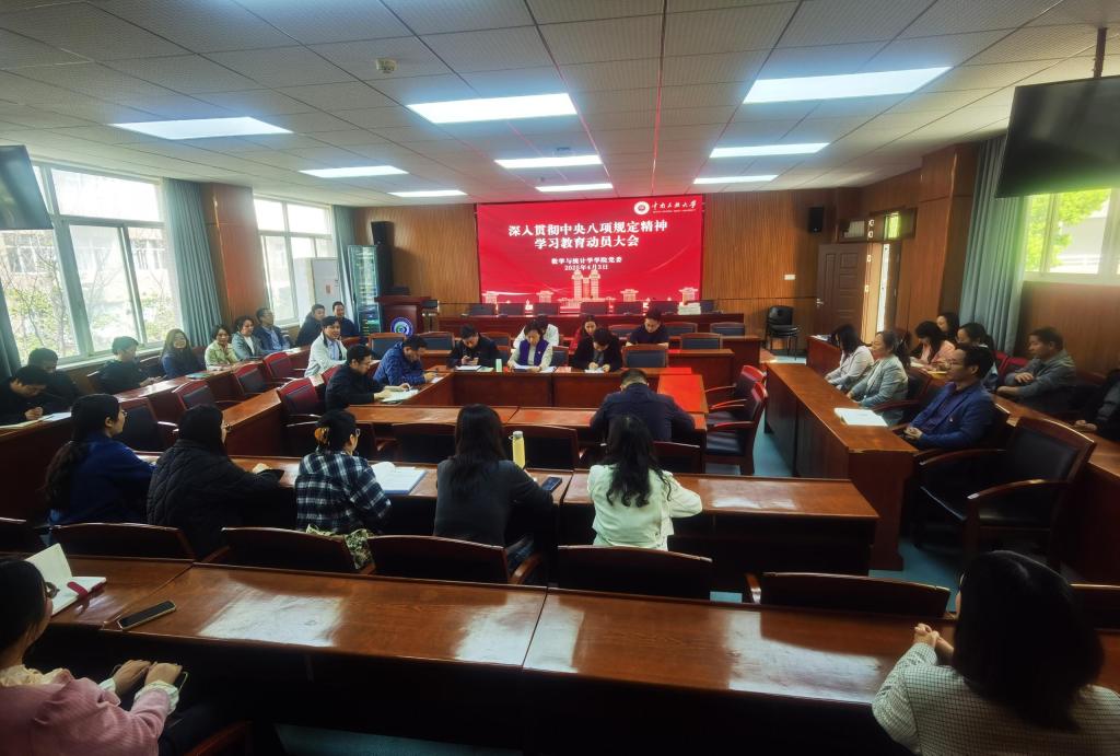 郭暉結合學院當前和今后一段時期的工作,對學院如何深入貫徹中央八項規定精神學習教育進行了詳細部署。他提出三個要求:一是要提高政治站位,要深入領會開展學習教育的重要意義。要從講政治的高度深刻認識本次學習教育是鞏固深化學習貫徹習近平新時代中國特色社會主義思想教育的重要舉措;要從講紀律的高度深刻認識本次學習教育是鞏固提升黨紀學習教育成果的重要契機;要從講發展的高度深刻認識本次學習教育也是推動學院事業高質量發展的重要契機。二要強化責任擔當,學院領導班子成員要切實履行一崗雙責,黨支部書記要全力抓好支部的學習教育,學院要形成上下聯動、整體發力的局面。三要認真組織實施,要準確把握學習教育的目標要求,要做到規定動作不走樣,自選動作有特色。不斷把學習教育引向深入,最終推動學院的黨風、院風、教風、學風實現新的提升,引領學院高質量發展。