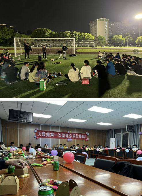 活動(dòng)大致分為自我介紹、才藝展示、互動(dòng)游戲和獎(jiǎng)品兌換四個(gè)環(huán)節(jié),但兩個(gè)團(tuán)支部的活動(dòng)又各具特色。應(yīng)數(shù)團(tuán)支部的團(tuán)建活動(dòng)舉辦地點(diǎn)在南區(qū)操場(chǎng),大家圍圈席地而坐,并邀請(qǐng)了DJ嘉賓全程伴奏,氛圍感拉滿(mǎn)。在互動(dòng)游戲環(huán)節(jié),123木頭人、你畫(huà)我猜等多種游戲都緊跟當(dāng)下年輕人的潮流,讓每一位同學(xué)都參與其中。其中游戲懲罰環(huán)節(jié),更是有“廣西科目三”、“擦玻璃”等熱門(mén)舞蹈的展示,引得大家掌聲不斷。大數(shù)據(jù)團(tuán)支部邀請(qǐng)了班導(dǎo)師賈小英老師和輔導(dǎo)員朱浩軍老師參與班級(jí)團(tuán)建,并讓兩位老師加入分組游戲與大家同樂(lè)。大數(shù)據(jù)把所有同學(xué)分成七個(gè)小組,整個(gè)游戲過(guò)程分為傳聲筒、競(jìng)猜歌名、數(shù)字問(wèn)答、線(xiàn)傳乒乓等4個(gè)小游戲,各個(gè)小組贏得比賽后將獲得相應(yīng)積分,最終獲勝的前兩組將獲得精美禮品。活動(dòng)最后,賈老師總結(jié)到,通過(guò)本次活動(dòng)她感受到了大數(shù)據(jù)學(xué)生的青春與活力,即便當(dāng)下受疫情影響,大家可以在這段抗疫時(shí)光里收獲更難能可貴的美好大學(xué)友情。