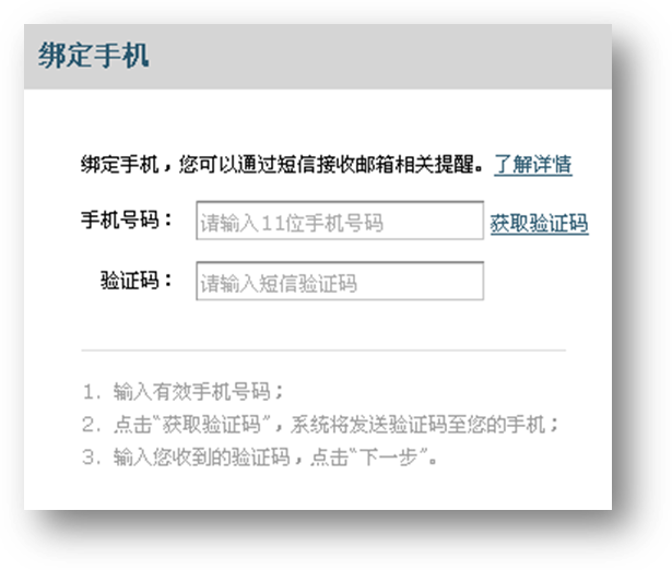 綁定手機(jī)后可以通過(guò)短信接收新郵件通知。