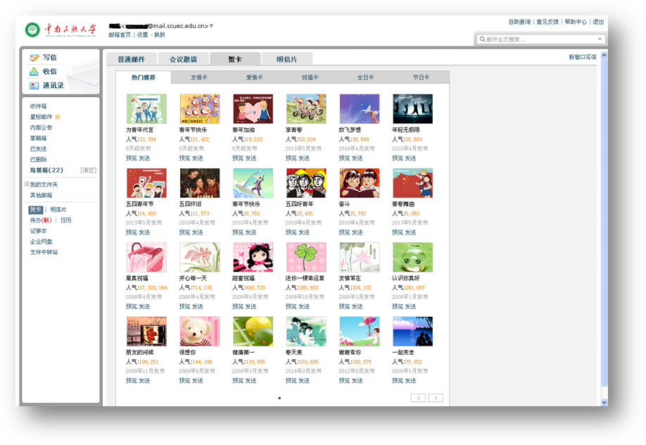 賀卡、明信片,師生可根據(jù)具體需求發(fā)送相應(yīng)的郵件內(nèi)容。