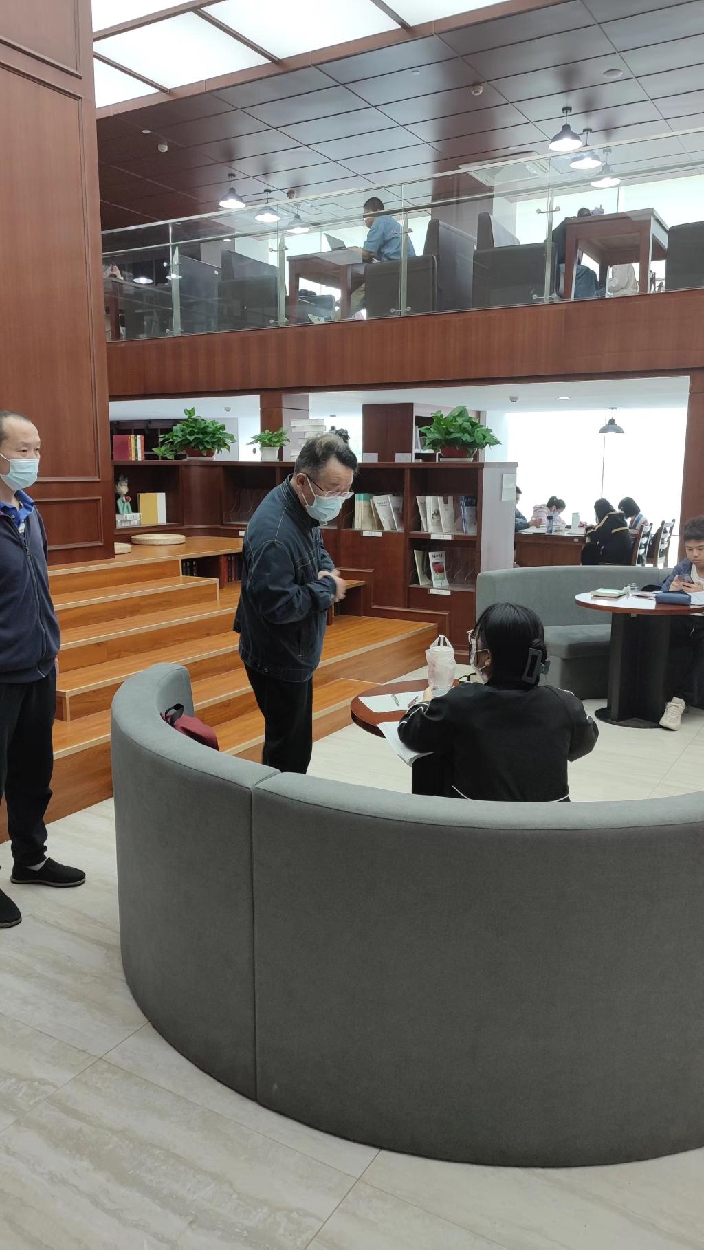 白江源在現代教育技術中心主要負責同志陪同下參觀了學校數據中心機房、容災機房,詳細地了解了兩座機房的運行現狀、安全管理等狀況,聽取了主要負責同志對園區內校園網、移動通信信號覆蓋情況的匯報,并實地走訪了圖書館新館、北書院等區域,與自習的同學們就網絡、移動通信使用情況進行了深入交流。