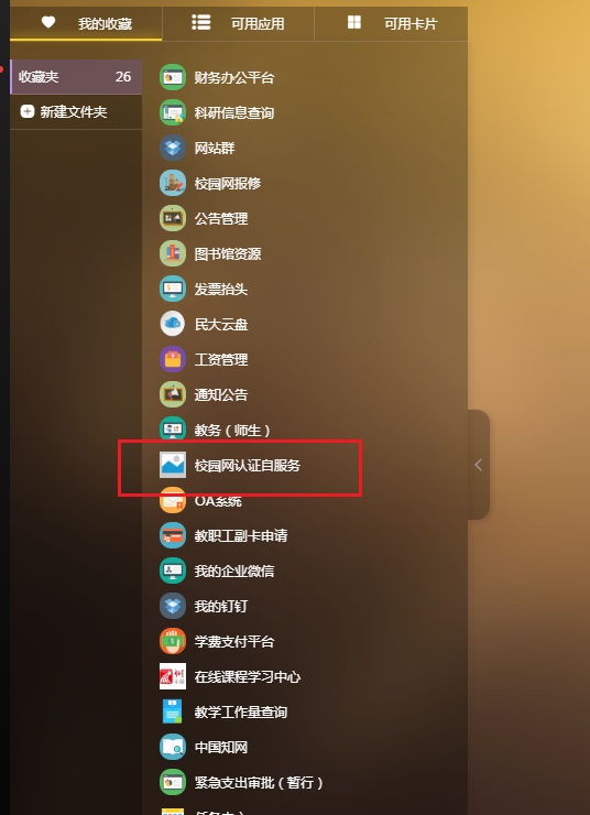 步驟1:通過“中南民族大學網上辦事服務大廳(點擊進入)”進入,查找“校園網認證自服務”應用,點擊進入;或在瀏覽器直接輸入http://selfservice.scuec.edu.cn進入校園網認證自服務認證界面,登錄賬號為學號、密碼為網上辦事服務大廳密碼,如下圖所示。