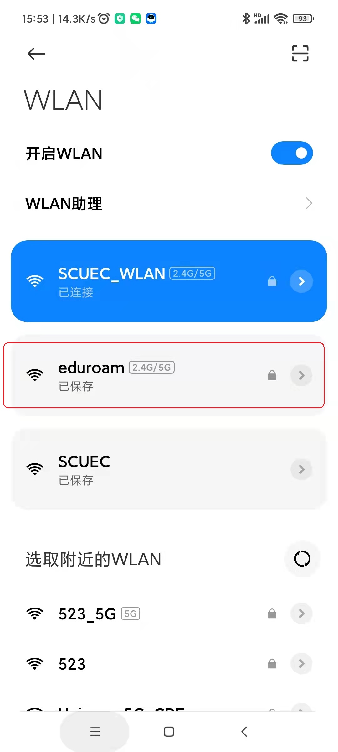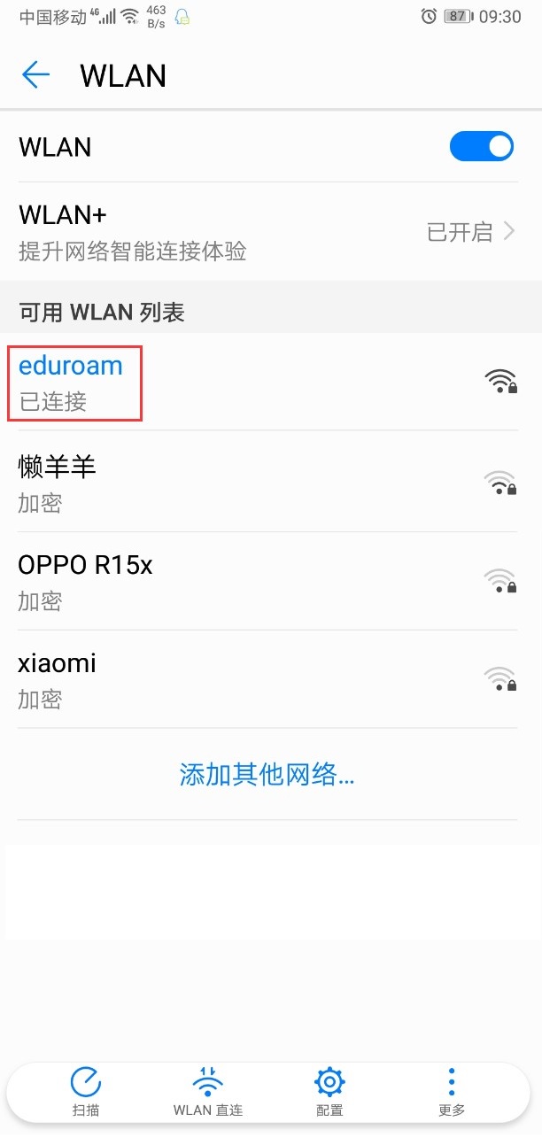 1、打開無線網(wǎng)絡(luò),如果搜索到802.1X認(rèn)證的eduroam無線,選擇該網(wǎng)絡(luò)接入;
