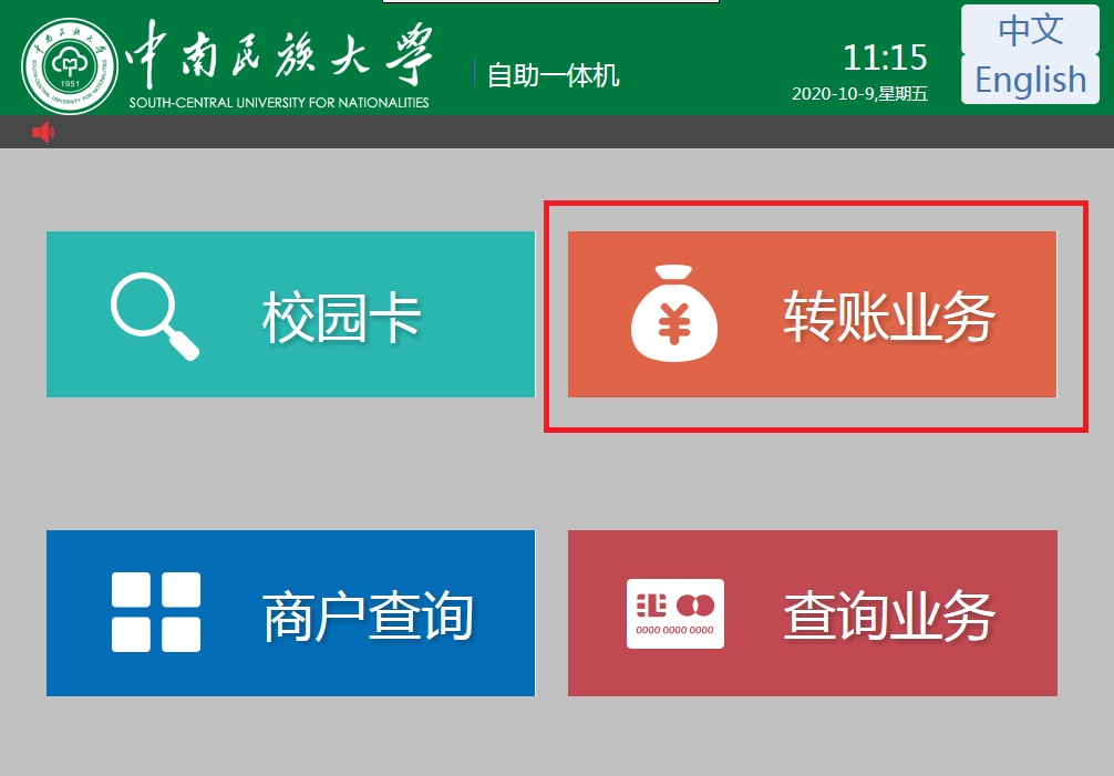 圈存機(jī)終端繳費(fèi),轉(zhuǎn)賬操作如圖1-2所示。