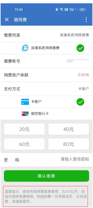 圖2 “深瀾網(wǎng)費(fèi)繳納”操作界面
