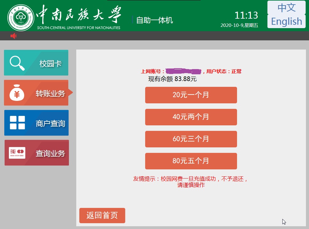 ★ 溫馨提示溫馨提示:畢業(yè)生離校前請勿多充繳網(wǎng)費(fèi),多充將無法退還。