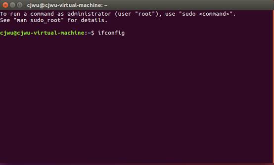 2.接著在終端中輸入ifconfig,回車。