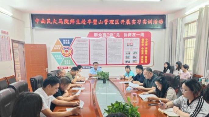 管理區負責人對師生們的到來表示歡迎,介紹了半壁山的基本情況并提出具體要求,希望同學們遵守紀律、深入基層,在感受當地文化的同時,積極運用專業知識,為社區發展注入新活力。會議還明確了實習任務分工。