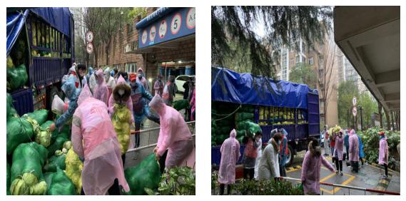 在家里還有孩子需要照顧的特殊情況下,瞿老師與愛人經(jīng)與社區(qū)領(lǐng)導(dǎo)協(xié)調(diào)后,兩人在同一崗位輪流置換開展工作,在社區(qū)工作人員的帶領(lǐng)下,出色的完成了入戶排查、志愿登記、門崗防控、快遞分發(fā)、愛心蔬菜搬運分發(fā)等工作。“當我真正參與到志愿工作后,我才發(fā)現(xiàn)作為一個普通公民尤其是作為社區(qū)的一份子,就是要做一些事情才能心安,心里才覺得踏實。”