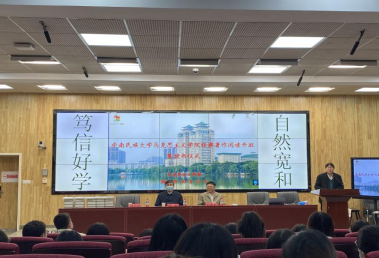 2021年10月27日下午,中南民族大學馬克思主義經典著作研讀班開班暨授書儀式我院在文一樓1-101會議室隆重舉行。校黨委書記邊境、武漢大學左亞文教授應邀出席并為學生代表授書。學院領導魏大江、楊金洲、梅喜萍、董杰、2021級全體研究生及部分本科生參加了此次活動。本次授書儀式由馬克思主義學院院長楊金洲主持。