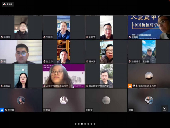 2022年11月27日,由中南民族大學馬克思主義學院和湖北省哲學史學會聯合舉辦的“優秀傳統文化與現代社會”學術研討會暨湖北省哲學史學會2022年年會在線上順利舉行。