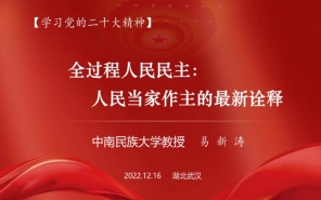 16日上午,湖北省委宣講團(tuán)成員、馬克思主義學(xué)院易新濤教授以“全過(guò)程人民民主:人民當(dāng)家作主的最新詮釋”為題,從“民主是全人類(lèi)的共同價(jià)值”“人民民主是黨始終高舉的偉大旗幟”“全過(guò)程人民民主是人民民主新形態(tài)”“用全過(guò)程人民民主書(shū)寫(xiě)人民當(dāng)家做主新篇章”四個(gè)方面,深刻闡釋了“全過(guò)程人民民主”的發(fā)展歷程、中國(guó)特色及中國(guó)標(biāo)準(zhǔn),指出全過(guò)程人民民主是制度體系、實(shí)踐環(huán)節(jié)全鏈條的民主,是主體、空間全覆蓋的民主,是最廣泛、最真實(shí)、最管用的民主。他強(qiáng)調(diào),學(xué)習(xí)貫徹二十大精神要在學(xué)習(xí)上、宣傳上下功夫,聯(lián)系思想實(shí)際,掌握核心要義,學(xué)深悟透,在實(shí)踐中真正推動(dòng)人的全面發(fā)展,在全體人民共同富裕中實(shí)現(xiàn)民主新發(fā)展,匯聚全人類(lèi)文明發(fā)展的強(qiáng)大合力,共同邁向更加美好的明天。