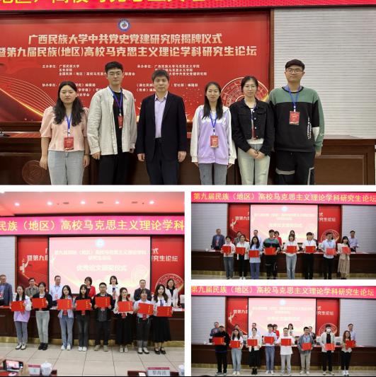 為推動民族(地區)高校馬克思主義理論學科青年學生學術交流,助力學科人才培養。2023年5月12日—13日,由民族(地區)高校馬克思主義學院院長聯席會主辦,廣西民族大學承辦的“第九屆民族(地區)高校馬克思主義理論學科研究生論壇”在相思湖畔以線下方式舉行,經初審、盲審、專家評審三輪激烈競爭,我院共有2名同學榮獲一等獎,3名同學榮獲二等獎,3名同學榮獲三等獎,并獲優秀獎若干,方智祺、劉靜、韓瀟瀟、張千傲同學作為學生代表應邀參會并發言。副院長黎海波、兼職輔導員彭春蘭帶隊參會。