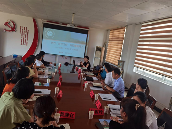隨后,來自不同院校的五位老師圍繞“社會主義核心價值觀”分別進行了精彩的課程展示。我院董梅昊老師從理論和實踐兩個維度辨析了普世價值觀的虛偽性,揭示了社會主義核心價值觀的重要性。
