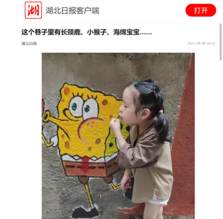 2.湖北日報(2023-08-08):這個巷子里有長頸鹿、小猴子、海綿寶寶……