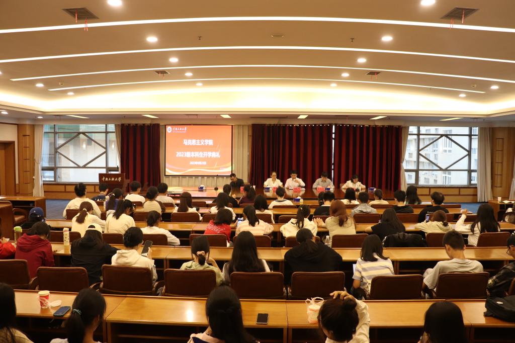全體新生在2023級本科生王樂樂帶領(lǐng)下進(jìn)行入學(xué)宣誓。同學(xué)們宣讀了“馬院姓馬,在馬言馬”的鏗鏘誓言,立志做馬克思主義理論學(xué)習(xí)者、研究者、實(shí)踐者、傳播者、捍衛(wèi)者,為實(shí)現(xiàn)中華民族偉大復(fù)興奮斗終身。
