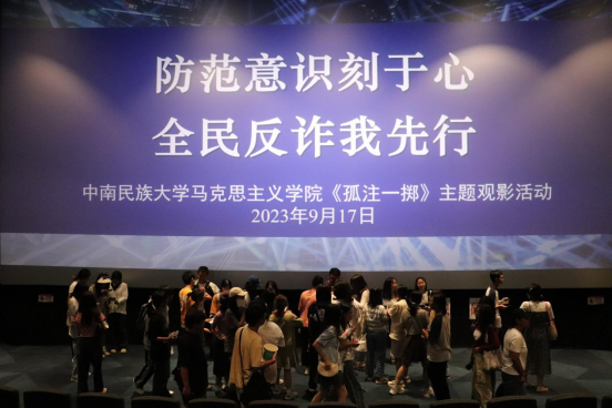 為切實(shí)增強(qiáng)新生識(shí)騙防騙的意識(shí)和能力,引導(dǎo)新生緊繃防范之弦,遠(yuǎn)離詐騙之害,9月18日晚,我院組織2023級(jí)全體本科生、研究生集體觀看反詐題材電影《孤注一擲》。院黨委書(shū)記湯振華、黨委副書(shū)記李建青、學(xué)工辦主任金瑤、研究生輔導(dǎo)員陳夢(mèng)妮和兼職輔導(dǎo)員石錦參加了觀影活動(dòng)。
