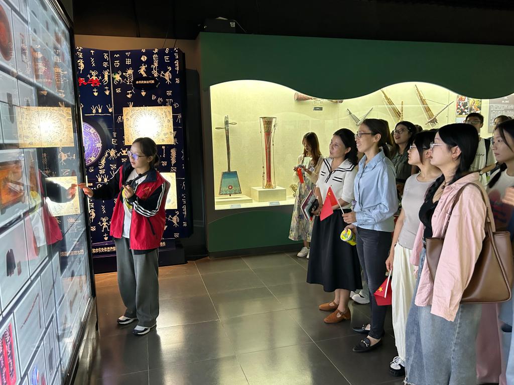 黎海波、李建青、瞿曉琳與同學們共走民大路,共賞南湖景,共話民大情。在民族學博物館,師生們在講解員的引導下依次參觀了各個展廳,分別了解了土家族、苗族、壯族等多個少數民族的歷史與文化,從民族服飾到民族節日,從民族文字到民族習俗,無一不吸引著師生們的目光。活動最后,師生們行至南湖操場,熱情滿滿地投入到趣味橫生的團隊游戲之中。