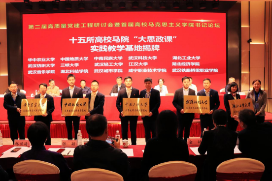 開幕式上,黎海波與華中農業大學、中國地質大學、武漢科技大學、湖北工業大學、武漢紡織大學和三峽大學等14所高校馬克思主義學院負責人一起向堯治河村授牌,與其共建“大思政課”實踐教學基地。
