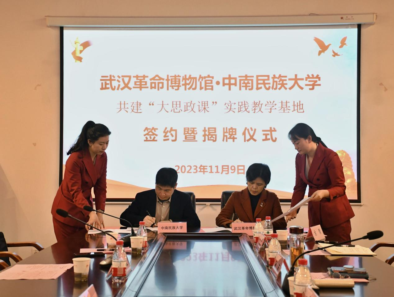 隨后,黎海波代表學(xué)校與武漢革命博物館簽署共建協(xié)議,并與曹波共同為我校“大思政課”實(shí)踐教學(xué)基地揭牌。