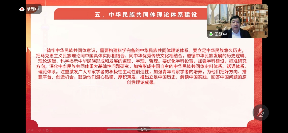 為深入學習貫徹習近平總書記在中央政治局第九次集體學習時的重要講話精神,教育引導師生不斷在學懂弄通做實上下功夫、求實效,11月20日晚,我院邀請中國社會科學院民族學與人類學研究所所長、研究員,鑄牢中華民族共同體意識研究基地首席專家王延中教授做客領航講堂,作專題輔導報告。報告會由校黨委書記邊境主持,并以線下線上相結合的形式,面向全校師生同步直播。