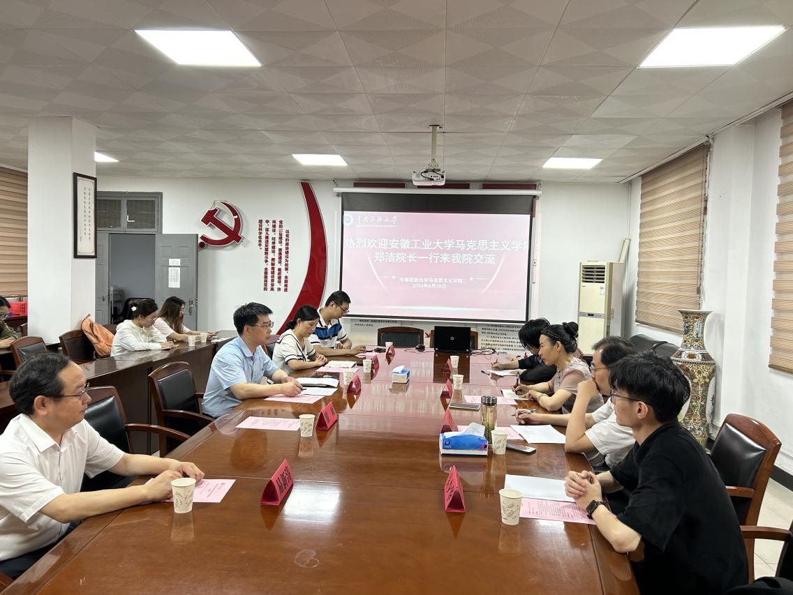 6月28日上午,安徽工業大學馬克思主義學院院長鄭潔及該院教師陸書建、王凌云、吳少華一行4人來我院調研交流。院黨委書記湯振華、副院長瞿曉琳接待了鄭潔一行并與來賓舉行座談。我院“習近平新時代中國特色社會主義思想概論”教研室主任易新濤教授、輔導員陳瑋龍及部分學生代表參加座談。座談會由瞿曉琳主持。