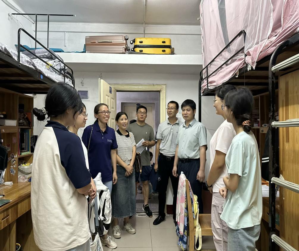 院領導先后走進南區13棟、11棟宿舍,與我院本科新生進行面對面交流,仔細詢問了同學們個人基本情況,詳細了解了同學們生活狀況和學習規劃,認真聽取了同學們對學院工作的意見建議等,送上了學院對同學們的關懷與期望,并叮囑大家注意防暑降溫,增強安全防范意識,確保用電安全和出行安全、謹防電信詐騙,做好個人衛生和宿舍衛生、預防疾病發生,遇到問題和困難要及時向學院老師反映。院領導勉勵同學們珍惜大學美好時光,明確奮斗目標,努力學好專業知識,提高綜合素質,腳踏實地,健康成長,努力成為讓黨放心、愛國奉獻、擔當民族復興重任的時代新人。