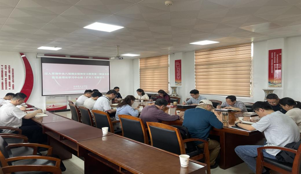 4月11日上午,我院舉辦深入貫徹中央八項規定精神學習教育讀書班暨黨委理論學習中心組(擴大)專題學習會議,集中學習《習近平關于加強黨的作風建設論述摘編》《中共中央八項規定》,并開展交流研討。院黨委委員、紀委委員,各黨支部書記、教研室主任參加學習,會議由院黨委書記湯振華主持。