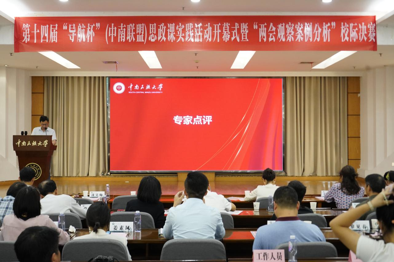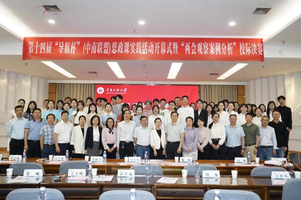 4月26日晚,第十四屆“導航杯”(中南聯盟)思政課實踐活動開幕式暨“兩會觀察”案例分析大賽校際決賽在我校開幕。中南聯盟20所高校馬克思主義學院負責人,我校黨委常委、副校長馬玉堂,教務處副處長李明立,我院副院長滕帥,相關高校師生代表近200人參加開幕式。