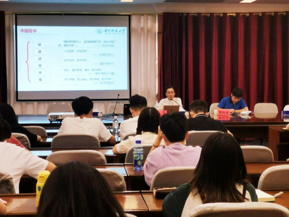 董慧教授主要從“國家安全的性質和內容”與“百年黨史中安全觀的梳理”兩個方面出發,對國家安全的“重要性”、“政治性”、“學術性”、“現實性”四重性質進行解讀,從而延伸出四個層面,即“從安全到總體國家安全觀”、“中國共產黨維護國家安全的歷程”、“新時代總體國家安全觀”、“時代意義與價值”。首先,董慧教授從中國傳統哲學和西方哲學兩個方面對“從安全到總體國家安全層面”進行了深入詮釋,指出從安全到總體國家安全觀是一個從不同領域到不同層次的共時態問題。其次,董慧教授對中國共產黨維護國家安全的歷程作了整體梳理,對“新民主主義革命時期”“社會主義革命和建設時期”“改革開放和社會主義現代化建設新時期”“中國特色社會主義新時代”四個不同時期中國共產黨維護國家安全所付出的努力做了宏觀概括,并以與日常生活密切相關的糧食育種問題深刻探討了糧食安全。再次,董慧教授通過梳理時間線,對新時代總體國家安全觀的提出做了細致明了的講解,從本質特征、基本架構、基本定位、基本要求和基本方法五個方面深入闡述了新時代總體國家安全觀,并特別對網絡空間安全這一非傳統國家安全作了簡要介紹。最后,董慧教授從本體論、認識論、價值論、方法論四個層次闡釋總體國家安全觀中的哲學智慧和時代價值,指出總體國家安全觀是對馬克思主義方法論的創新運用,是中華民族偉大復興的重要保障,是全球治理體系變革的基本遵循。董慧教授還就“如何透過哲學看中國共產黨百年偉業”“研究生新生如何做學術研究”等問題與同學們進行了深入交流探討。