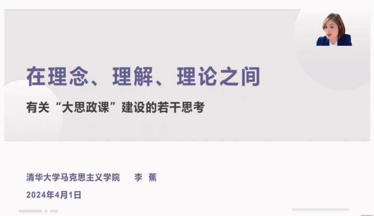 講座中,李蕉教授從理念、理解、理論三方面對(duì)“大思政課”進(jìn)行了闡釋。在理念層面,她回顧了近年來“大思政課”在思想政治工作規(guī)劃中的展開,指出教育管理部門在領(lǐng)導(dǎo)方式上從“管理”走向“治理”。在理解層面,她指出,“大思政課”的本質(zhì)仍然是課,這一新形態(tài)的“課”重在將課堂中的馬克思主義理論講出時(shí)代性、針對(duì)性。以清華大學(xué)的思想政治理論課為例,她闡述了思政課教師應(yīng)如何理解思政教育與人才強(qiáng)國、高等教育以及強(qiáng)國建設(shè)之間的邏輯關(guān)系,并深入剖析了“大思政課”為何能在短時(shí)間內(nèi)推動(dòng)思政課的改革創(chuàng)新這一重要命題。在理論層面,“大思政課”建設(shè)是一條改革的“顯線”,思想政治教育自主知識(shí)體系的構(gòu)建是一條創(chuàng)新的“隱線”,二者相輔相成、互為表里。“大思政課”的知識(shí)生產(chǎn)方式更利于當(dāng)下學(xué)科轉(zhuǎn)型。從“思政課”到“大思政課”的轉(zhuǎn)變,受益于教育管理部門、思政課教師與思政教育學(xué)者的共創(chuàng)共為,其課程構(gòu)建方式與知識(shí)生產(chǎn)方式將帶來一場(chǎng)更深遠(yuǎn)的系統(tǒng)性變革。